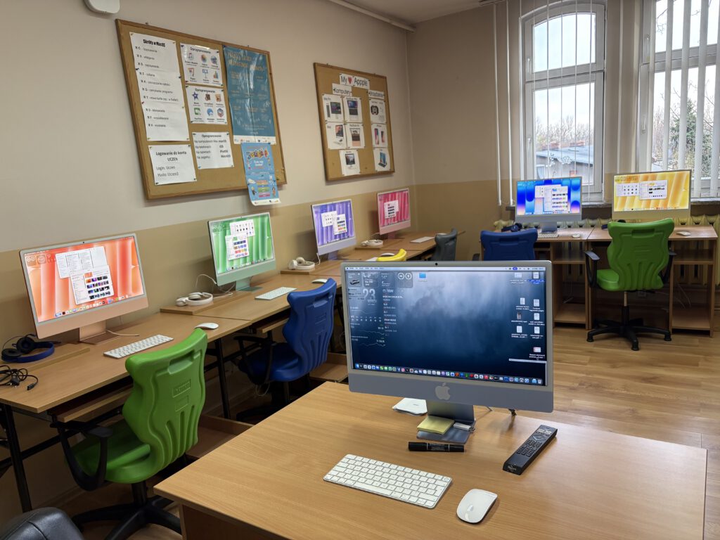 Miło nam poinformować, że od 1 września 2019r., na terenie naszej szkoły działa pracownia komputerowa Apple Mac. Środki na jej powstanie zostały wydzielone z budżetu szkoły (budżet Miasta Katowice). W 2026r. wymieniono w niej sprzęt komputerowy na Apple iMac M4.