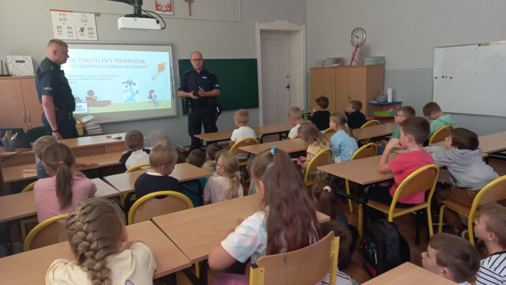 Uczniowie klas pierwszych uczestniczyli w zajęciach dotyczących zasad bezpieczeństwa i poruszania się po drodze prowadzonych przez funkcjonariuszy policji.
