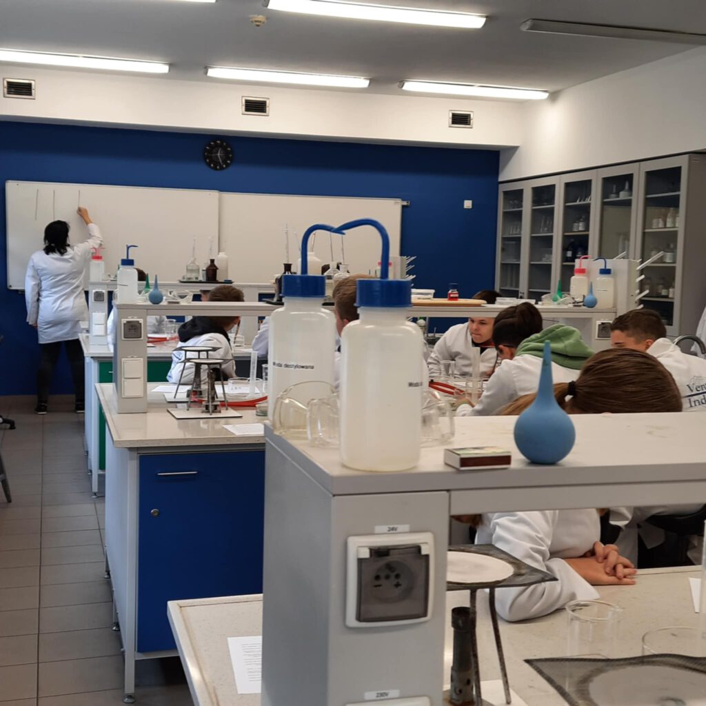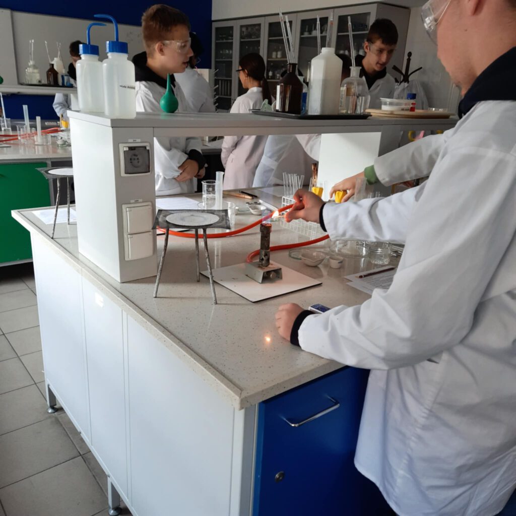 W dniu 30 września uczniowie klasy 8a uczestniczyli w wyjątkowych zajęciach z chemii w ramach programu „Naukowe Poranki” w laboratorium chemicznym Pałacu Młodzieży w Katowicach. Tematem zajęć były kwasy.