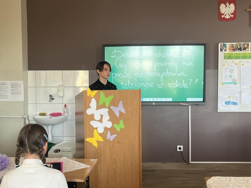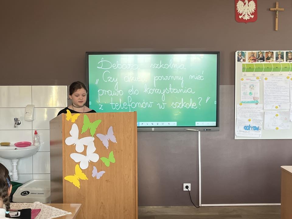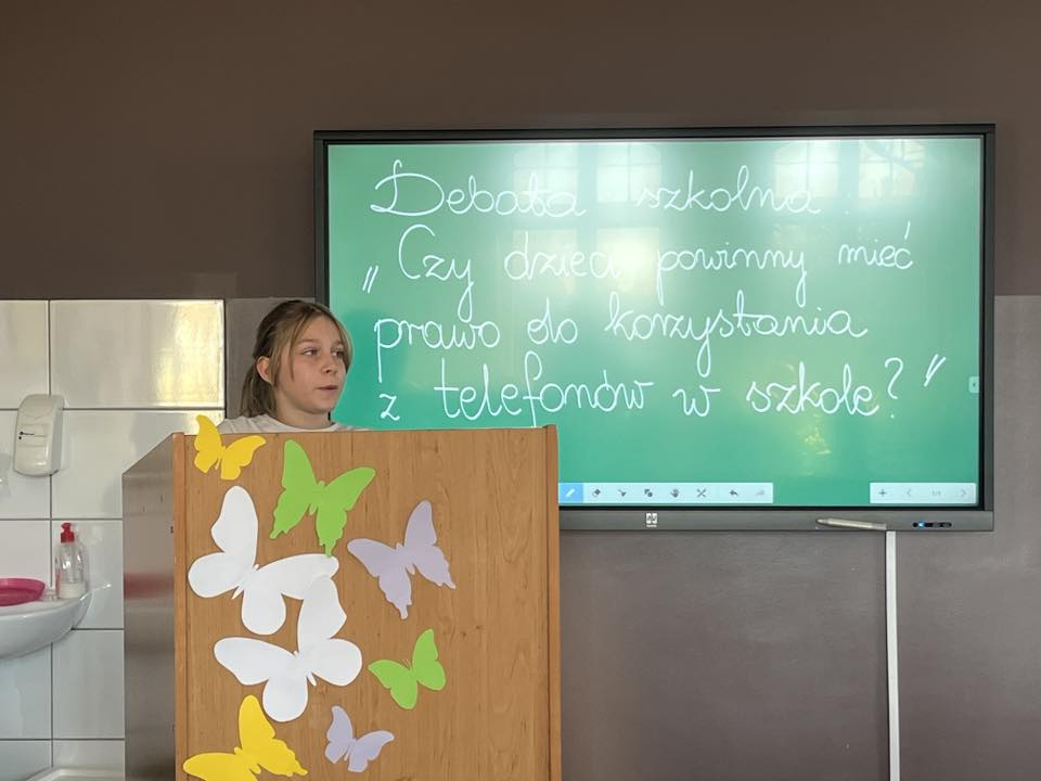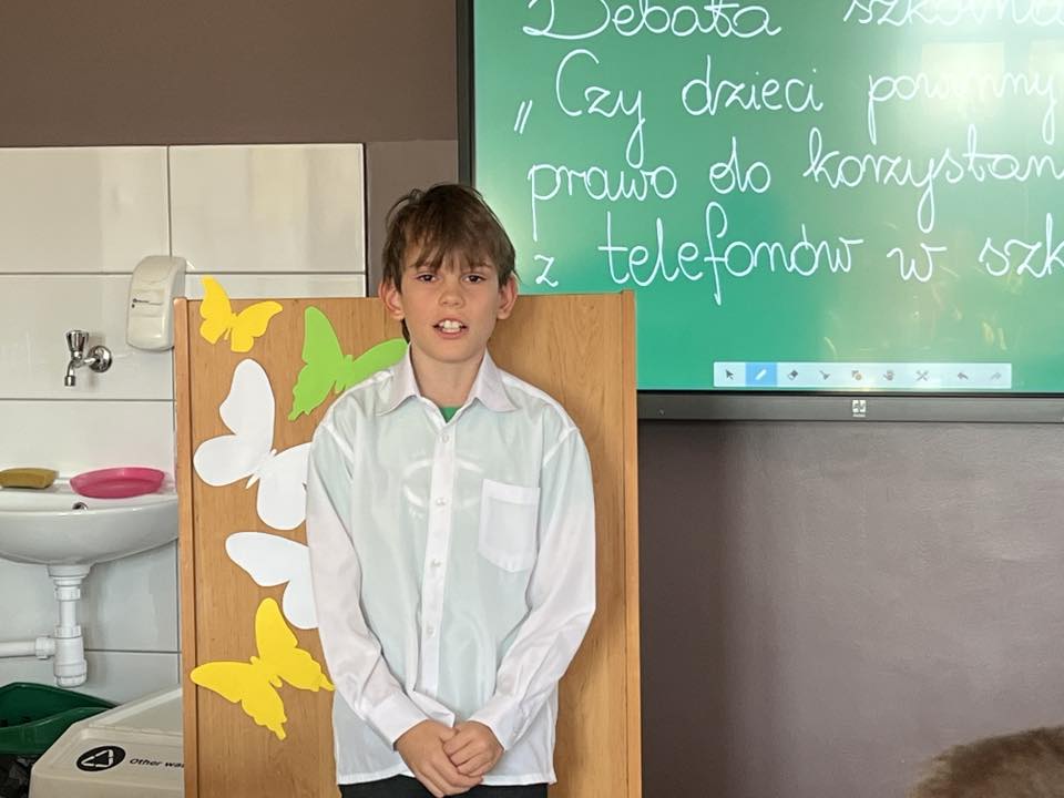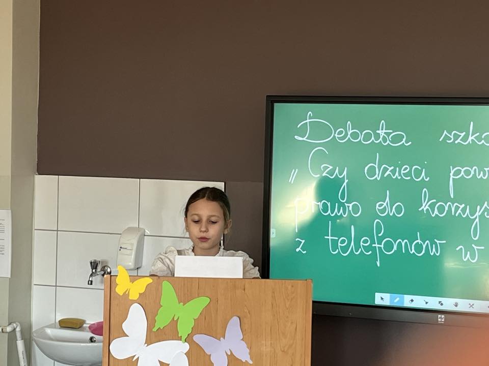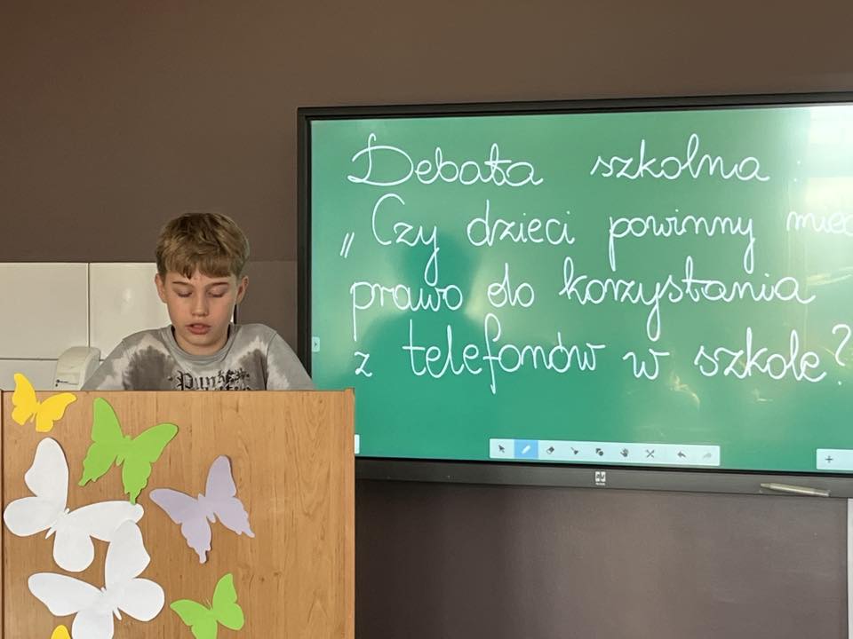 W ramach obchodów Miedzynarodowego Dnia Praw Dziecka już tradycyjnie reprezentacje kl. 4-8 wzięły udział w debacie oksfordzkiej. Tegoroczny temat debaty 📱📱📱 „Czy dzieci powinny mieć prawo do korzystania z telefonów w szkole?” 📱📱📱był okazją do podjęcia rozważań o granicach wolności oraz odpowiedzialności w posługiwaniu się nowoczesnymi technologiami. Głosami publiczności zwycięzcami debaty okazały się drużyny z klas: I m. 8a (Oliwia M., Amelia B., Andrii M.), II m. 7b ( Oliwia S., Kamila K., Marcel T. ), III m. 8b ( Oliwia K. , Wiktoria S., Michał Sz.). Gratulujemy!👏👏👏
