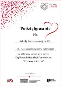 W ramach corocznego Ogólnopolskiego Dnia Głośnego Czytania – 29 września – została przeprowadzona niezwykła V ogólnopolska akcja czytelnicza „Czytamy z sercem”. Celem akcji była promocja...
