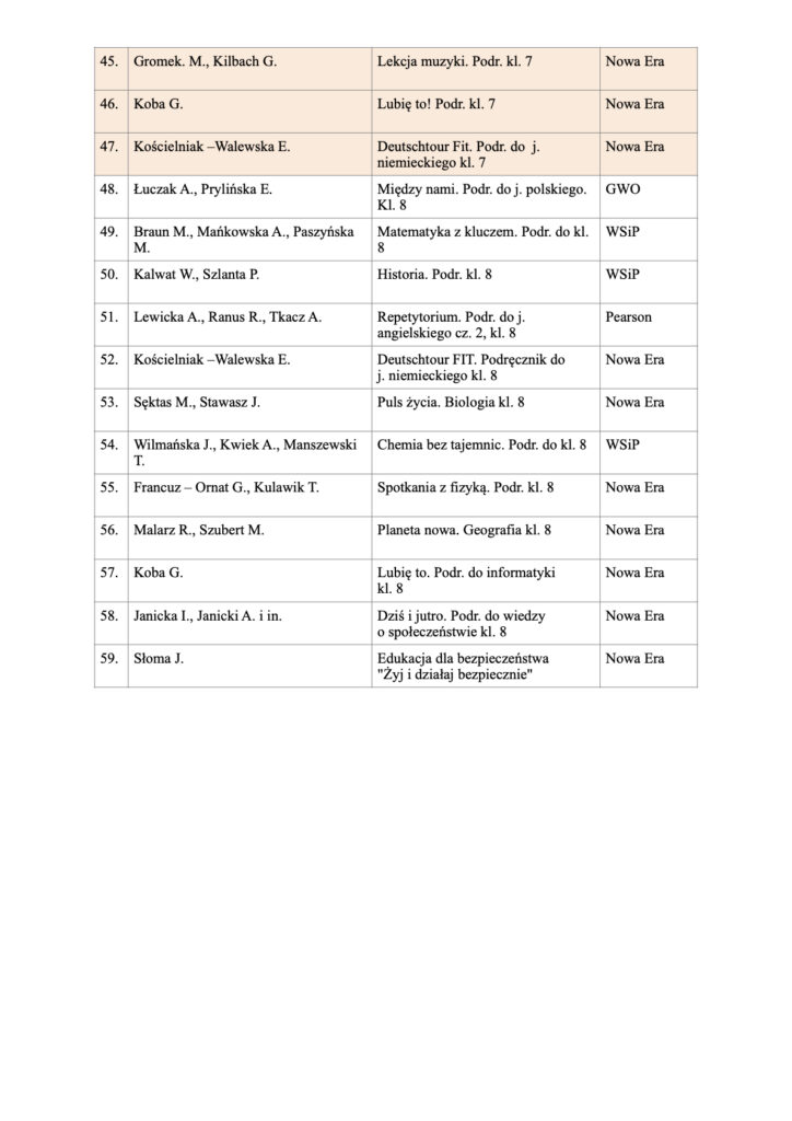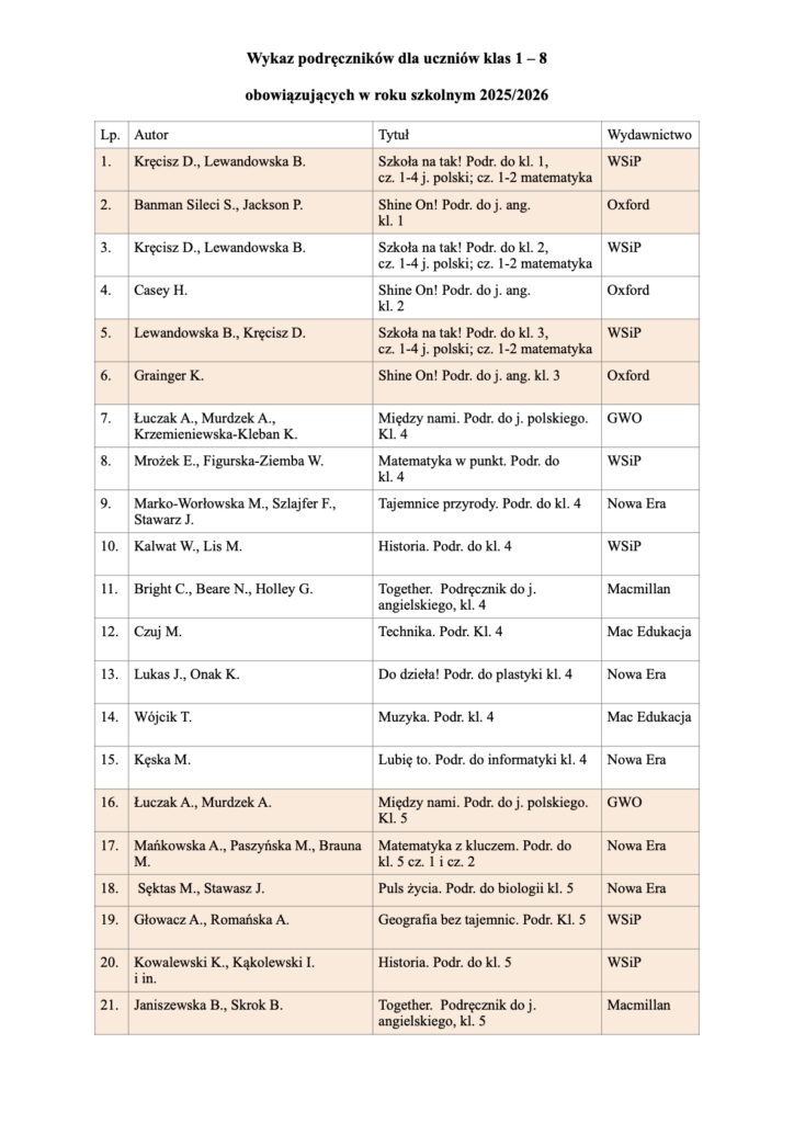Wykaz podręczników dla klas uczących się w szkole w roku 2025/2026: